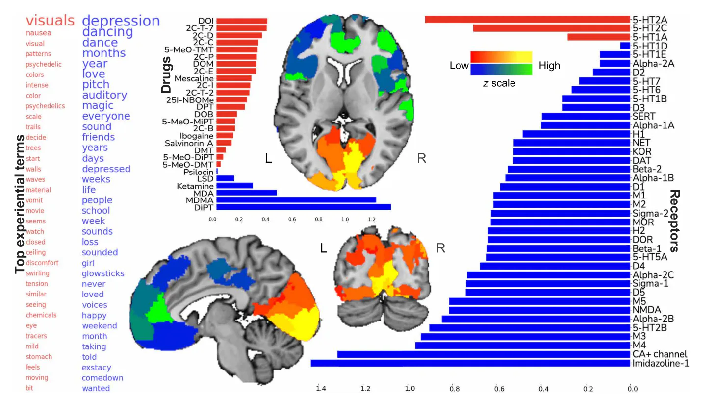 They mapped the affinity of each hallucinogenic drug to various neurotransmitter receptors in the brain. Once they identified those receptors, they mapped where in the brain they were most active. The results, published this week in Science Advances challenge our existing understanding of the mechanisms by which hallucinogenic drugs produce their profound effects.