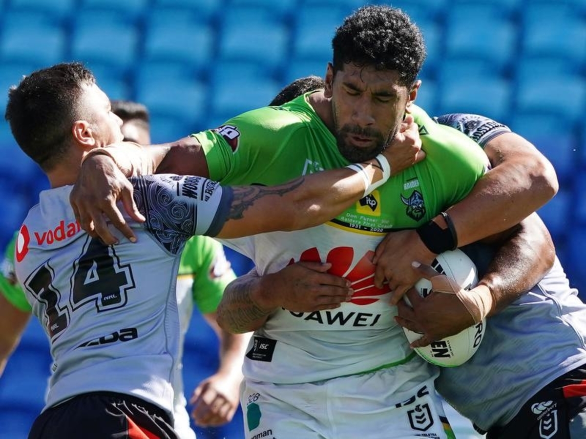 Soliola will play his first game in almost three months against Cronulla on Saturday, as one of nine new faces in the Raiders side for their final-round clash.