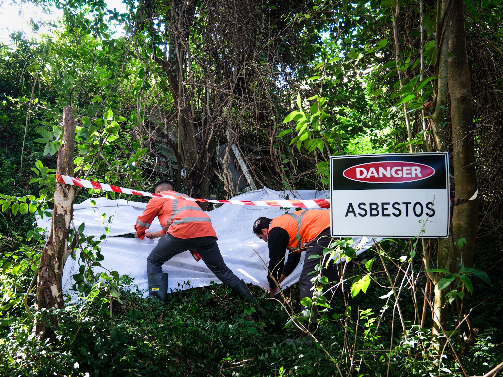 Within 48 hours of the ABC sending questions to the department, workers had installed asbestos warning signs, erected a fence and covered the impacted area in a white fabric for encapsulation.