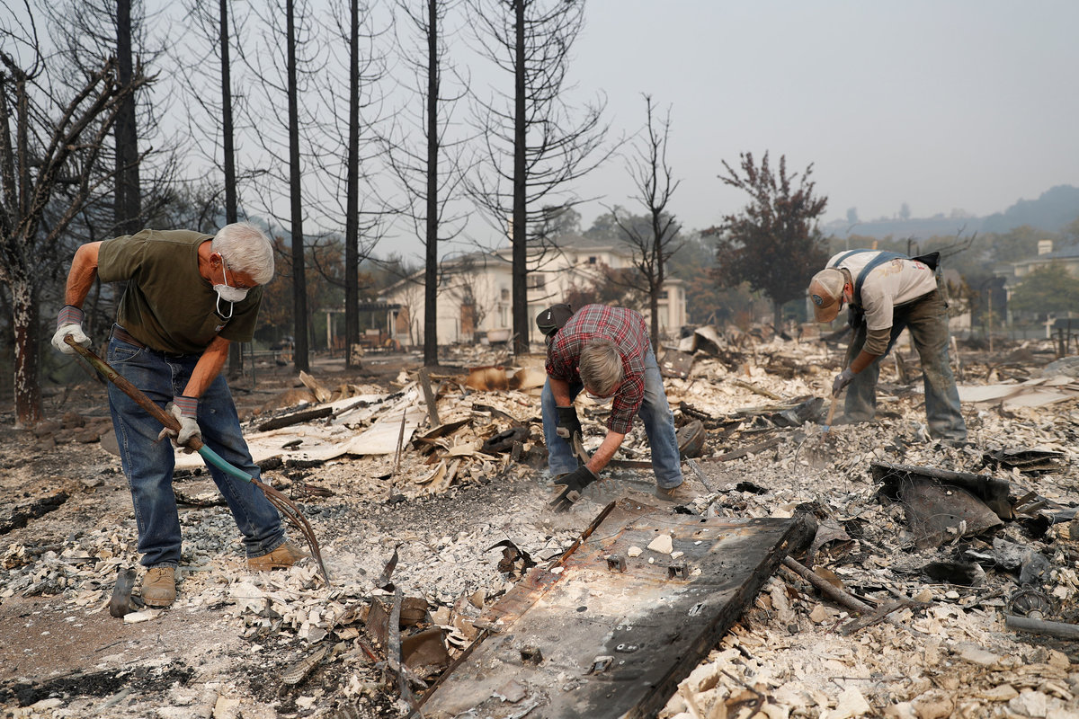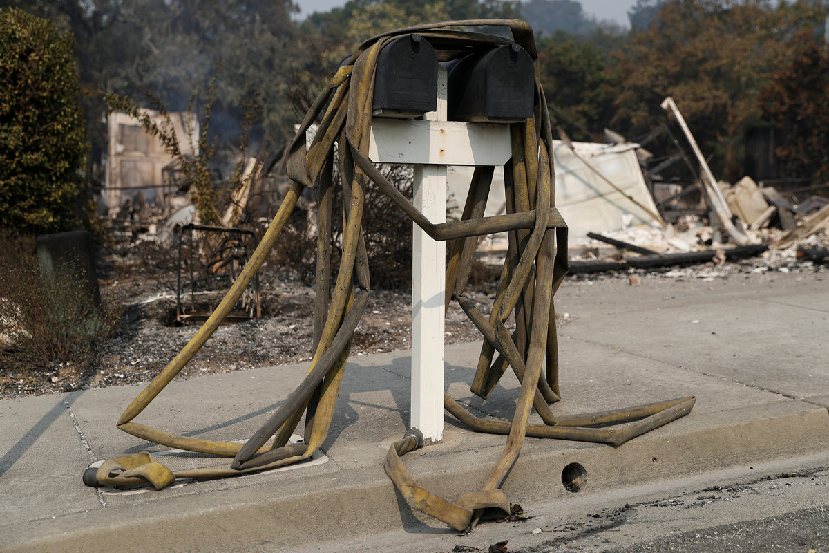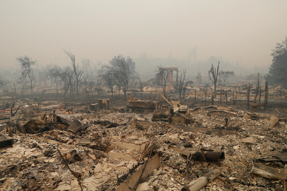 North of San Francisco, the fires reduced houses to ashes in several communities. The city of Santa Rosa was particularly hard hit by the so-called Tubbs Fire, which damaged a Hilton hotel and destroyed a mobile home park.
