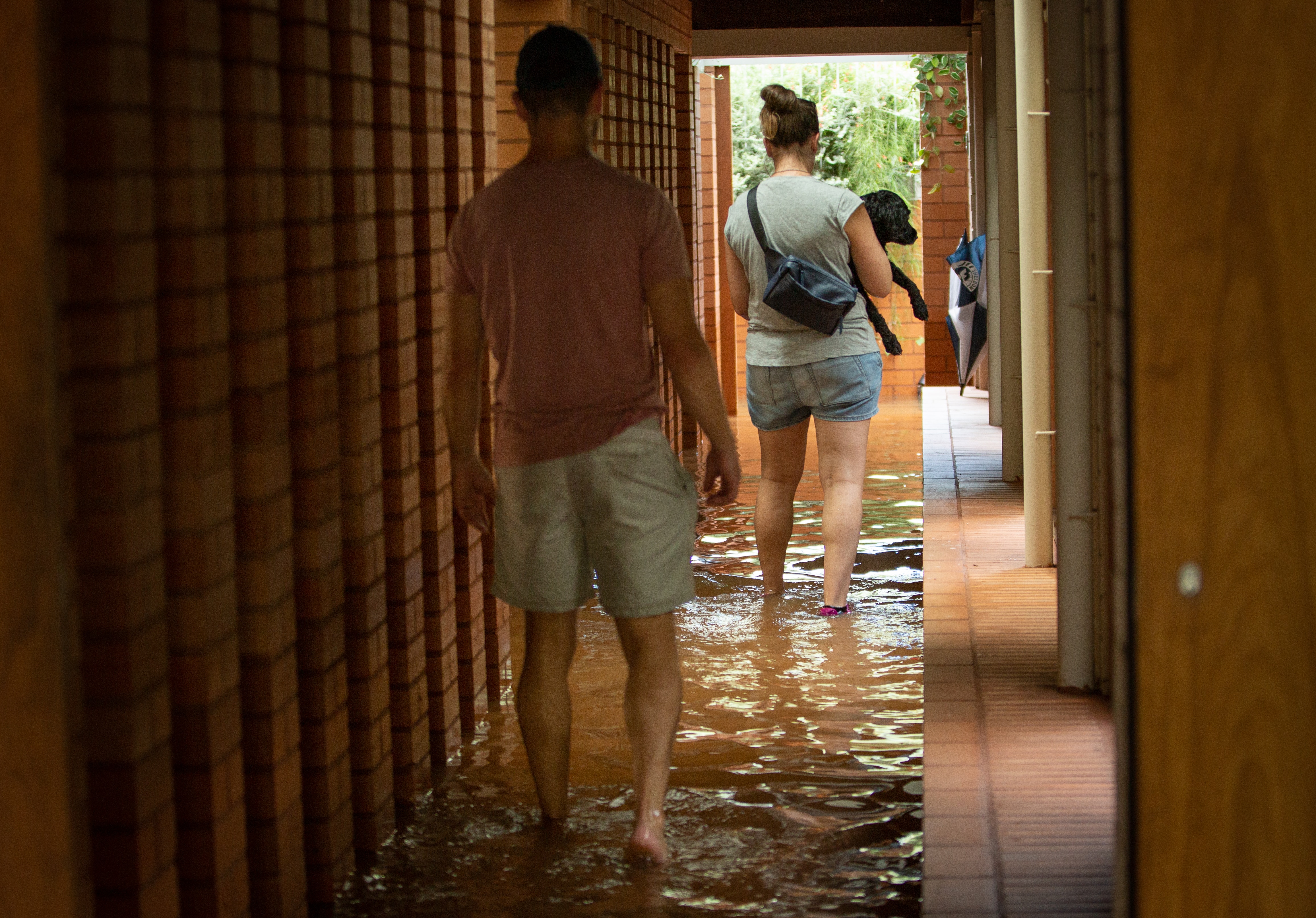 Around the corner, partners Cam Brooks and Liz Evans mobilised six of their friends to carry stuff from under their house to safety upstairs.