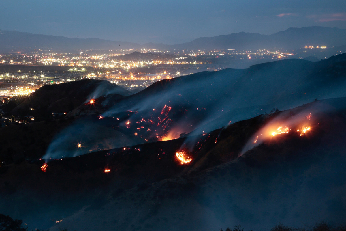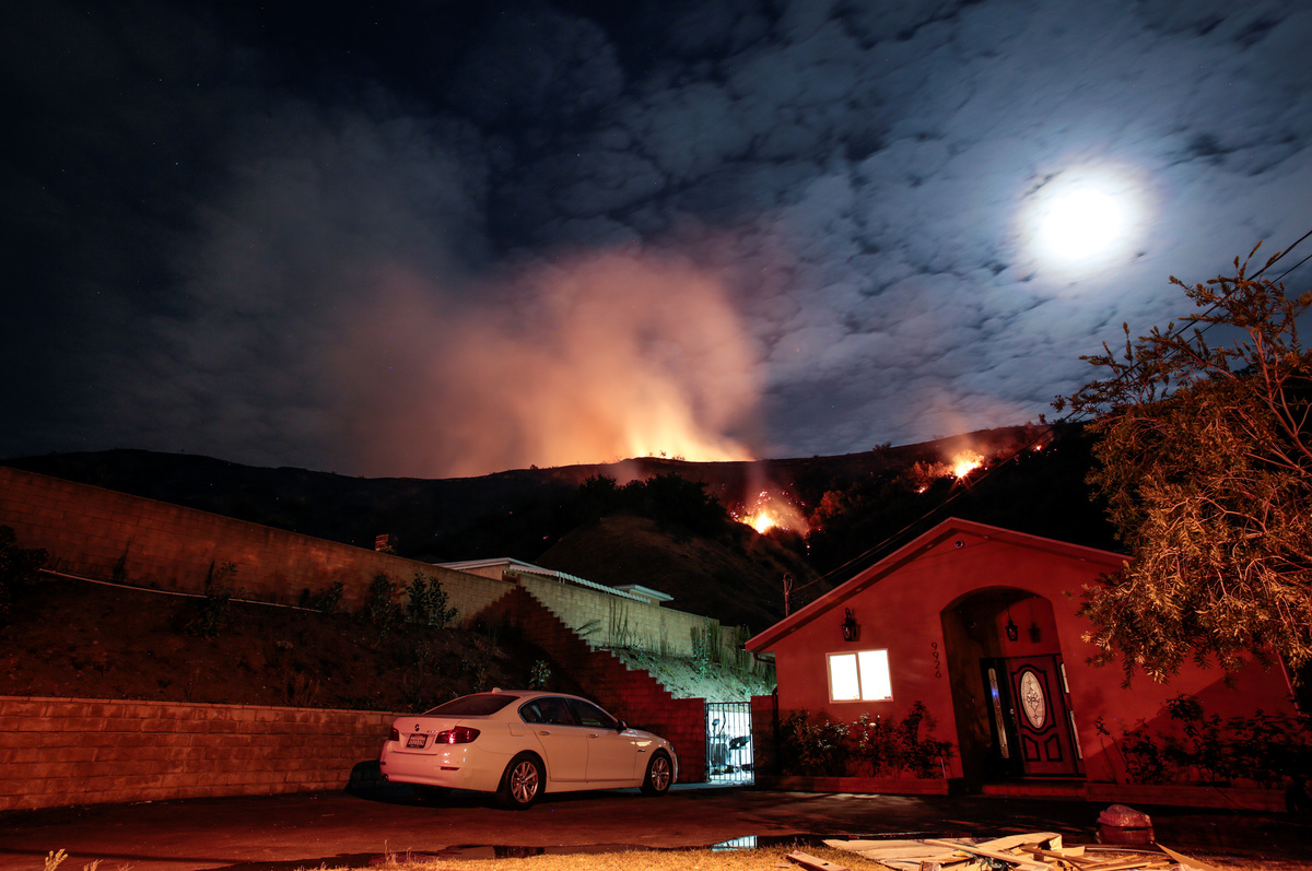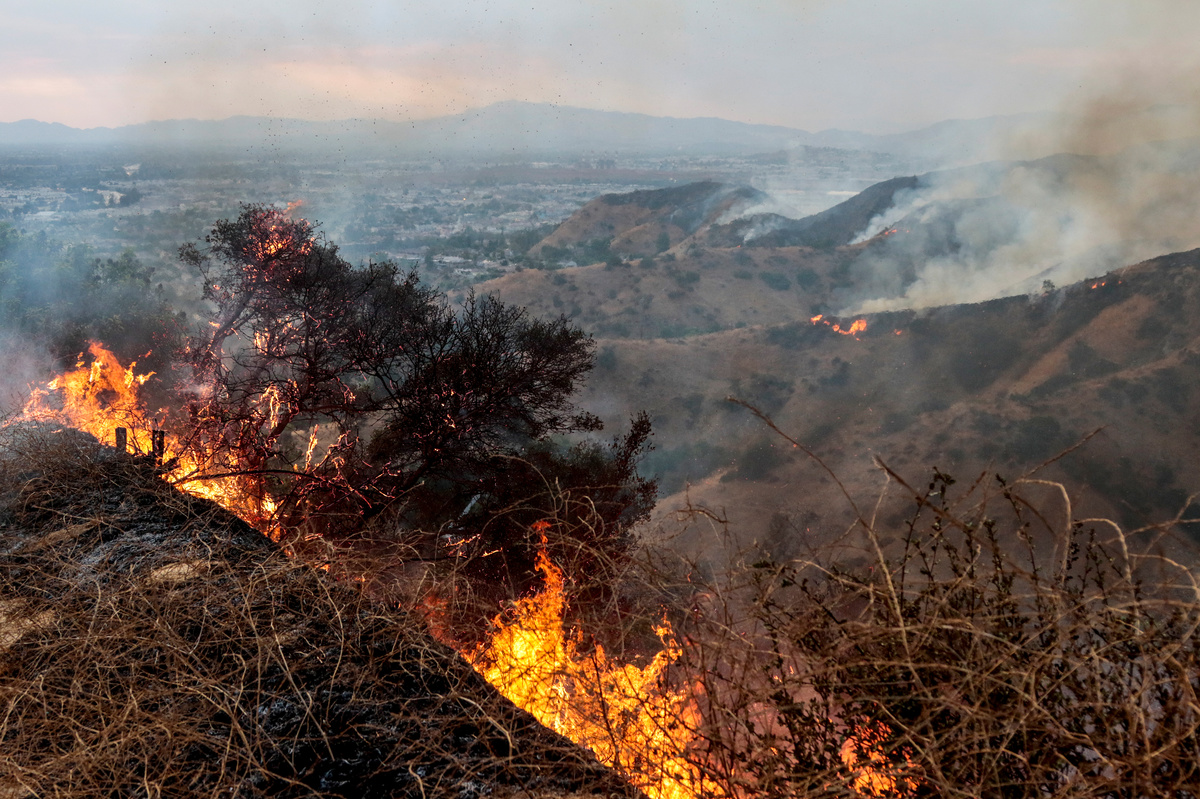 Video posted online by media showed the fire burning along the 210 Freeway when it broke out on Friday, with smoke hovering over the roadway as cars passed by flames a few dozen feet away. Officials quickly closed a stretch of the freeway.