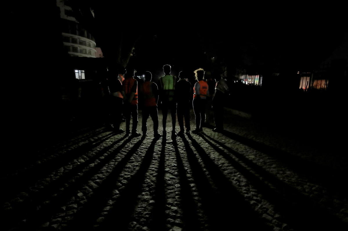 Getachew and his team - dozens of men in bright orange vests, brandishing hefty sticks - search pedestrians and cars for weapons and suspects from noon until 10 p.m.