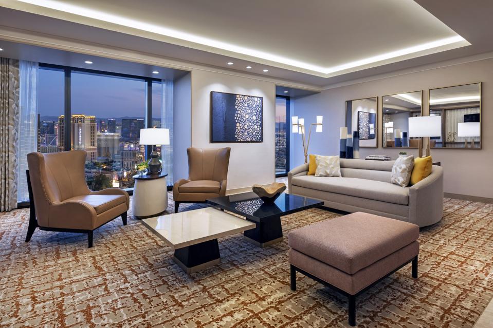 The Conrad is more of a Vegas-style hotel than Conrad regulars may be used to. It's an enormous hotel so inevitably there are queues for reception although there is a priority line for those with status. Rooms are large and feature gorgeous part marble bathrooms with raindrop showers and a super comfortable bed. Unfortunately, there are no electronic curtains or coffee machines until you get to the one-bedroom suites. However, these are well worth the extra money and feel more like a penthouse suite than a standard one. As well as a large living area, there is a walk-in closet with a well-lit dressing table and a large oval bathtub to soak your Vegas-weary feet!