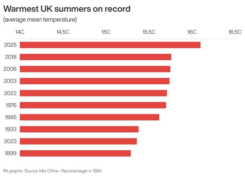 The experts also warned that 2025 and other recent drought years such as 2022 – when temperatures topped 40C in parts of the UK for the first time in a searing heatwave – and 2018, also showed the impact of hotter temperatures worsening droughts.