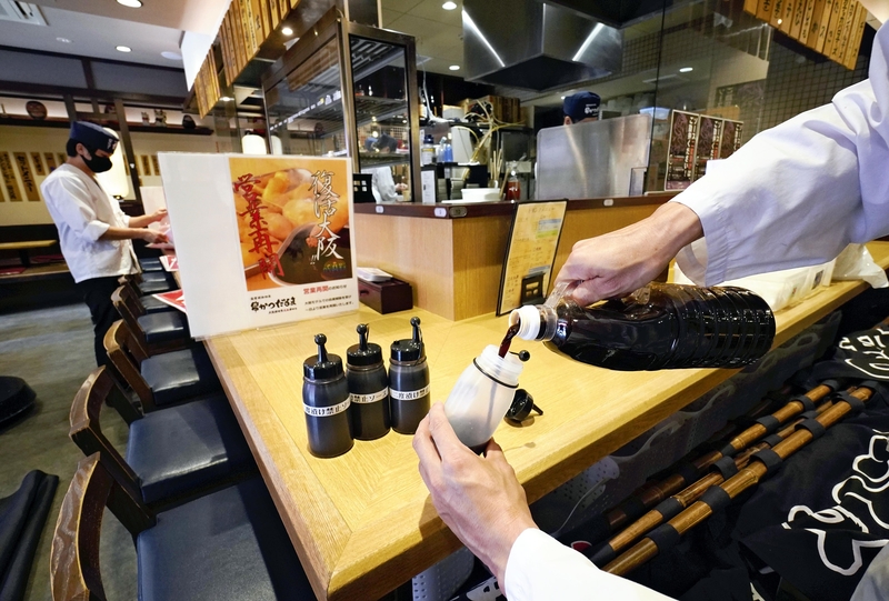 "[I don't expect] customers will come back anytime soon, but when they do stop by, I want them to enjoy Osaka specialties without any anxiety," said the manager of the Dobutsuen-mae location in Naniwa Ward, Osaka.