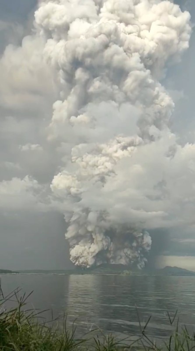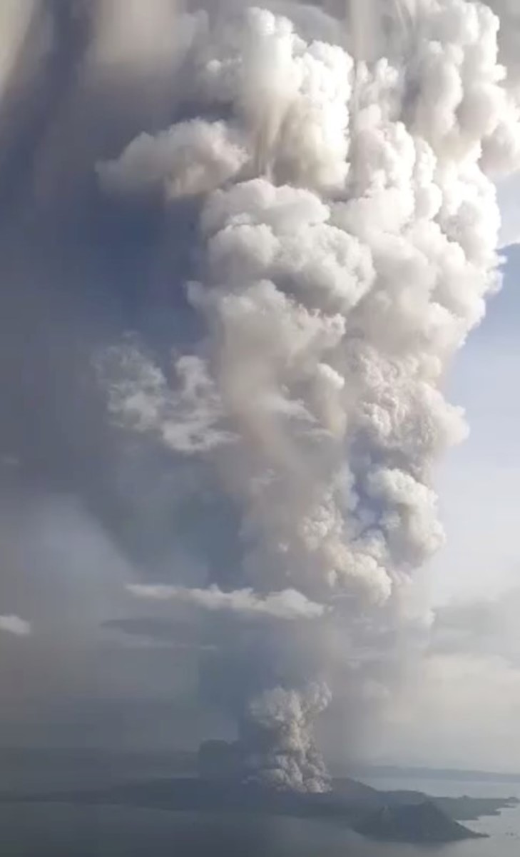 Thousands of people were evacuated from the area near Taal volcano after it suddenly shot a column of ash and steam as high as 15 km (nine miles) into the sky. Lightning crackled inside the smoke and tremors shook the ground.