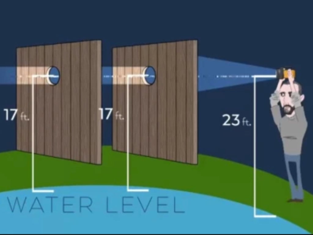 In the video, the flat-Earther conducts his experiment and reviews the footage he filmed.