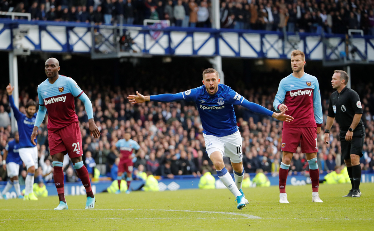 (Reuters) - Everton snapped a four-game losing streak as Bernard's superb solo goal in the first half and midfielder Gylfi Sigurdsson's stunner in added time helped the struggling Premier League side beat West Ham United 2-0 at Goodison Park on Saturday.