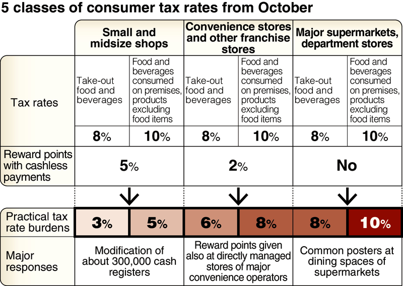 With one month left until the Oct. 1 consumption tax rate hike to 10 percent, retailers are hastening preparations for a more complicated tax scheme that incentivizes cashless payments, keeps the 8 percent rate on daily necessities and introduces a reward points system for small and midsize retailers.