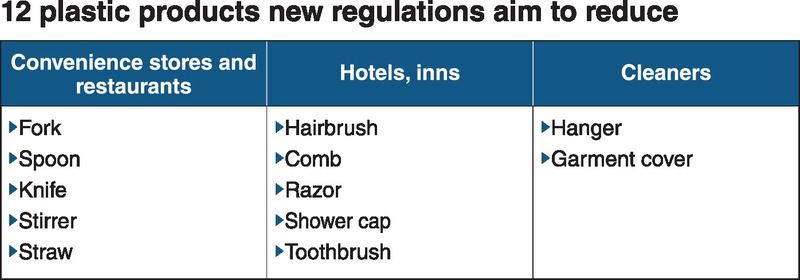 As for the 12 products containing plastic, it will become obligatory for businesses that use more than five tons of such products a year to adopt at least one of the following four practices: