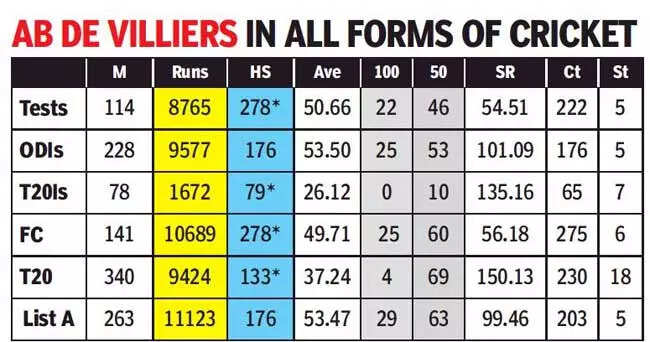 Announcing his decision, de Villiers said in a statement, "It has been an incredible journey, but I have decided to retire from all cricket. Ever since the backyard matches with my older brothers, I have played the game with pure enjoyment and unbridled enthusiasm. Now, at the age of 37, that flame no longer burns so brightly."