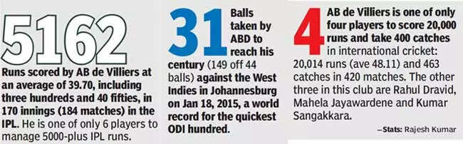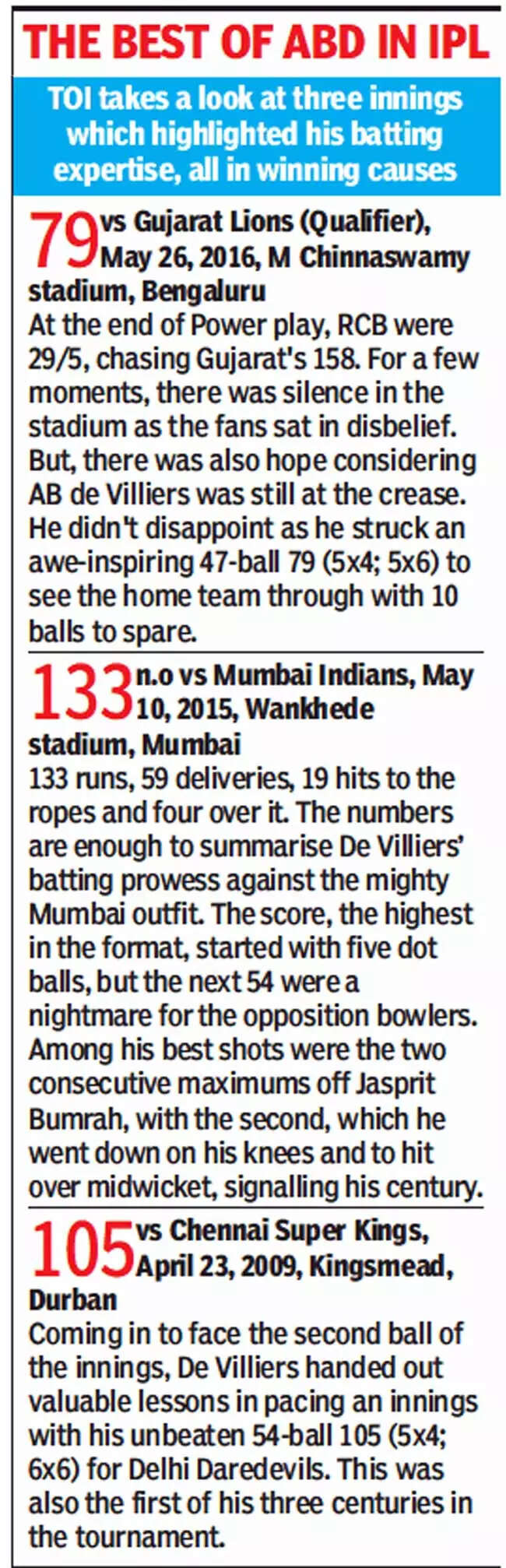 Among the most feared and respected cricketers of his generation, de Villiers delighted his fans in Bengaluru -who would slip into delirium at the briefest glimpse of their star on the giant screen - since 2011, coming in from the Delhi franchise at a price of Rs 5 crore.