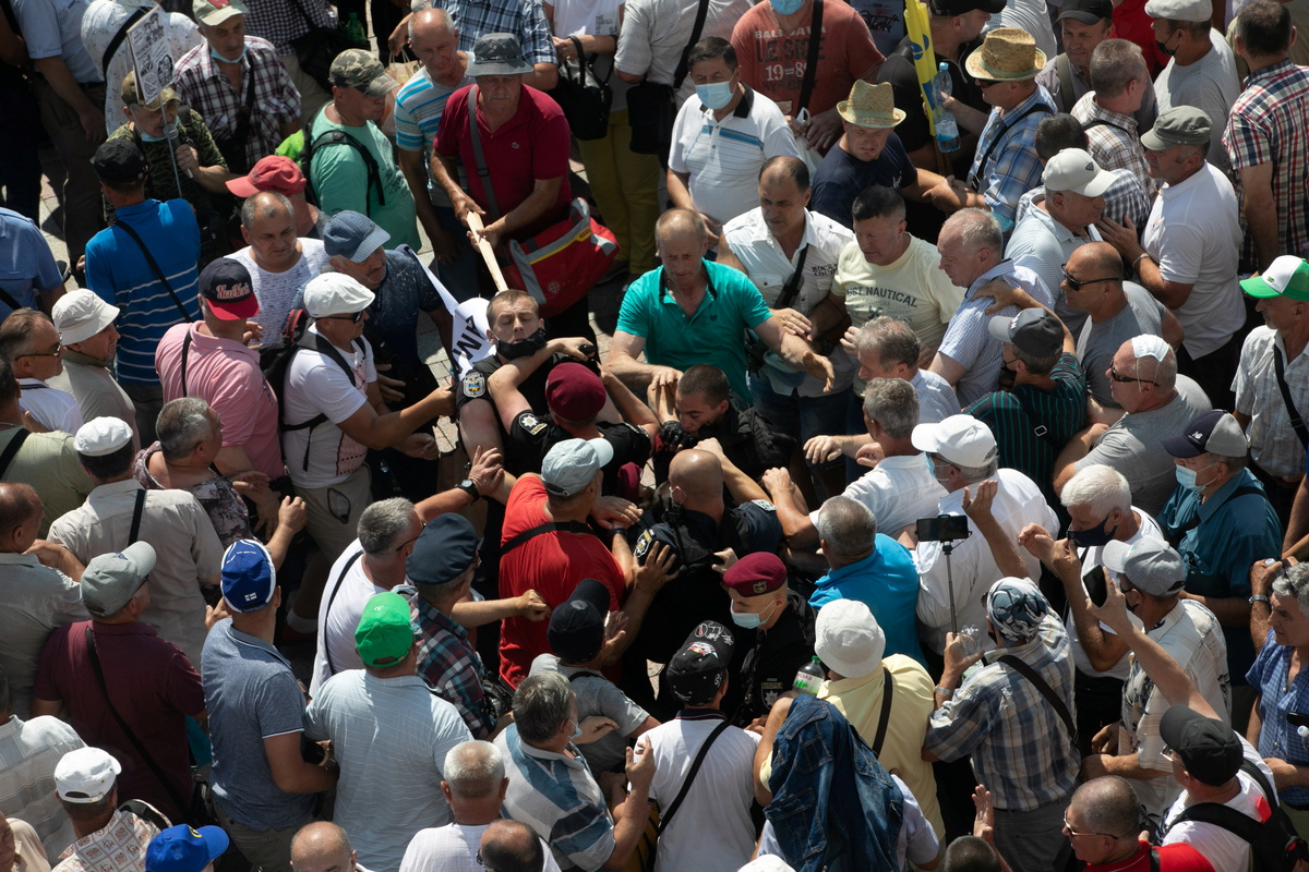 Several hundred retired Ukrainian police officers attempted to storm the parliament building on Wednesday demanding an increase in their pensions.