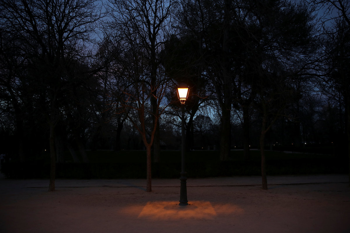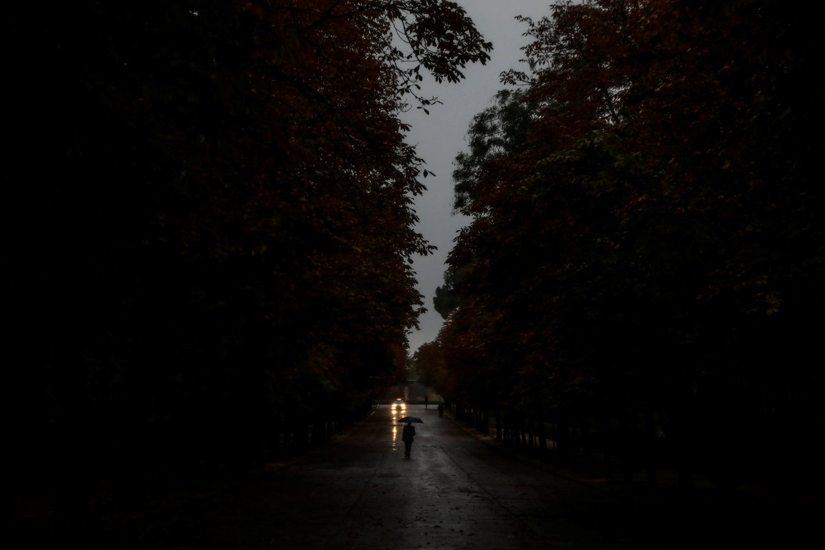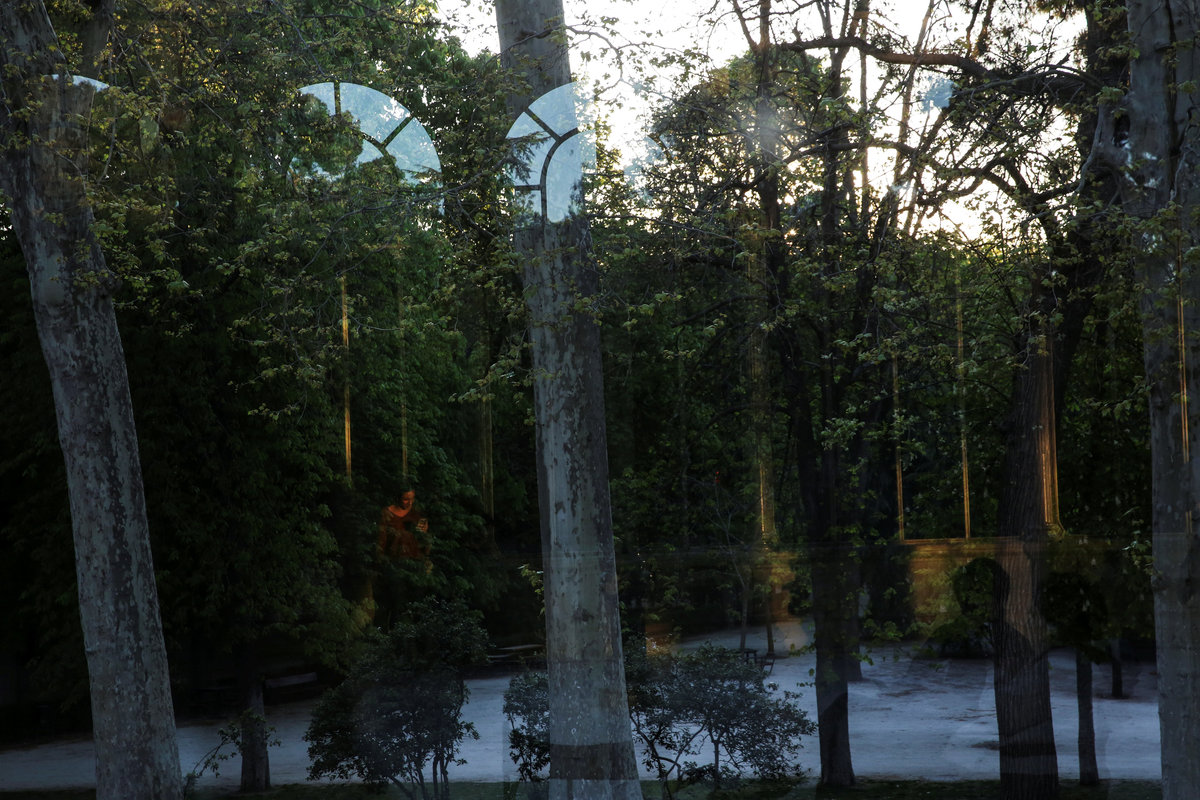 A man walks in the rain in Retiro park in Madrid, Spain, October 18, 2017. REUTERS/Susana Vera A street performer dressed as Mickey Mouse rests on a bench by a pond in Retiro park in Madrid, Spain, March 6, 2017. REUTERS/Susana Vera A woman checking her phone is seen reflected on the windows of the "Palacio de Cristal" in Retiro park in Madrid, Spain, April 6, 2017. REUTERS/Susana Vera A streetlight is lit at sunset in Retiro park in Madrid, Spain, March 7, 2017. REUTERS/Susana Vera Two elderly men chat as they go for a walk with their canes in Retiro park in Madrid, Spain, February 8, 2017. REUTERS/Susana Vera The moon is seen over Retiro park in Madrid, Spain, April 7, 2017. REUTERS/Susana Vera A man picks up his blanket in Retiro park in Madrid, Spain, June 14, 2017. REUTERS/Susana Vera A woman protects herself from the occasional ray of sun at La Rosaleda garden in Retiro park in Madrid, Spain, June 28, 2017. REUTERS/Susana Vera A sculpture is seen behind scaffolding in Retiro park in Madrid, Spain, March 7, 2017. REUTERS/Susana Vera Fallen leaves cover a table and the ground in Retiro park in Madrid, Spain, October 18, 2017. REUTERS/Susana Vera