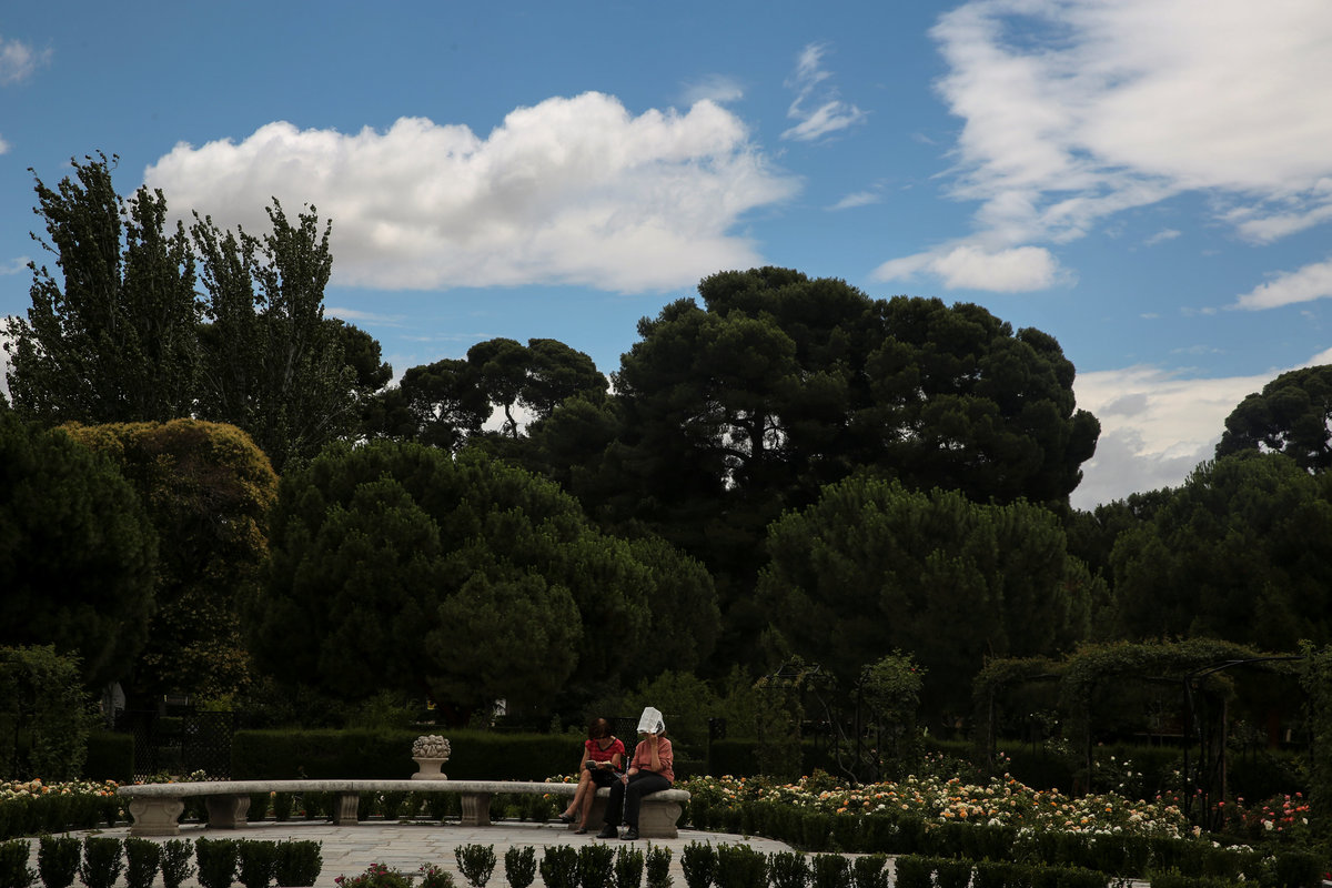 It has a garden with over 4,000 rosebushes which fill the air with scent when the flowers bloom in May and June, and the "Palacio de Cristal" built in 1887, a glass and iron structure inspired by London's Crystal Palace.