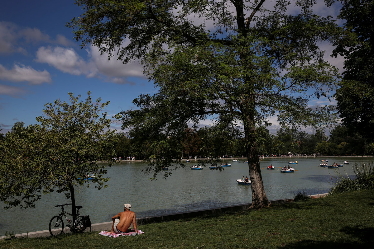 A man sits in the sun by a pond in Retiro park in Madrid, Spain, June 28, 2017. REUTERS/Susana Vera