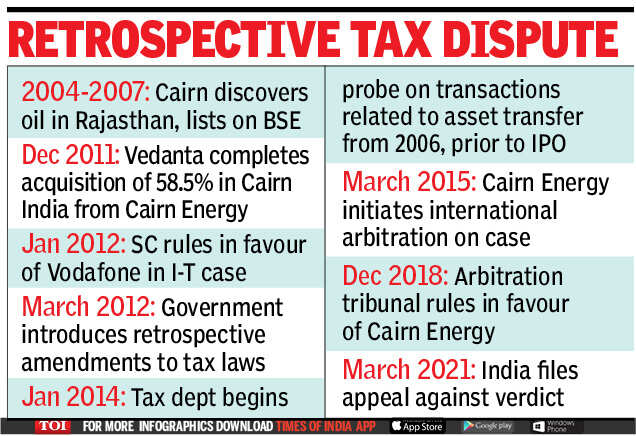 In December 2020, a permanent court of Arbitration at The Hague had ruled that the Indian government should pay damages worth $1.2 billion to Cairn Energy, since a case of retrospective tax was wrongly applied on the company.