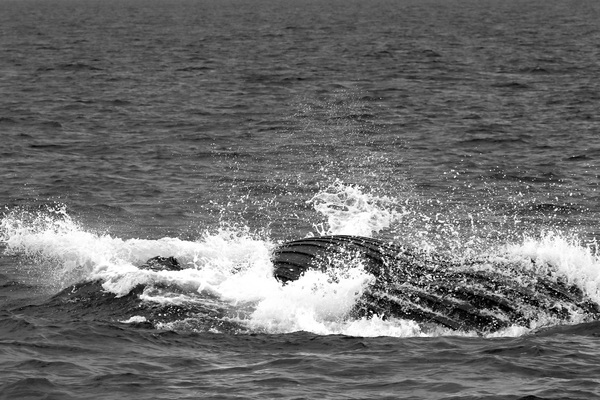 A few weeks after the dolphin sightings, the American Princess was again out on the water. After an hour and a half, someone saw a spout. It was a humpback, about 40 feet long. It rolled over, displaying its striated underside. More oohs and aahs.