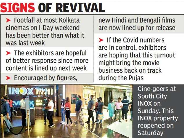 According to regional director at INOX (East) Amitava Guha Thakurta, it was “encouraging to witness an increase in footfall during the I-Day weekend”. “This gives us strong hopes for the coming week. The good turnout for cinemas indicates that the appetite and passion is intact despite the pandemic. With ‘Bell Bottom’ scheduled to release on August 19, the occupancies are only going to get better,” he said.