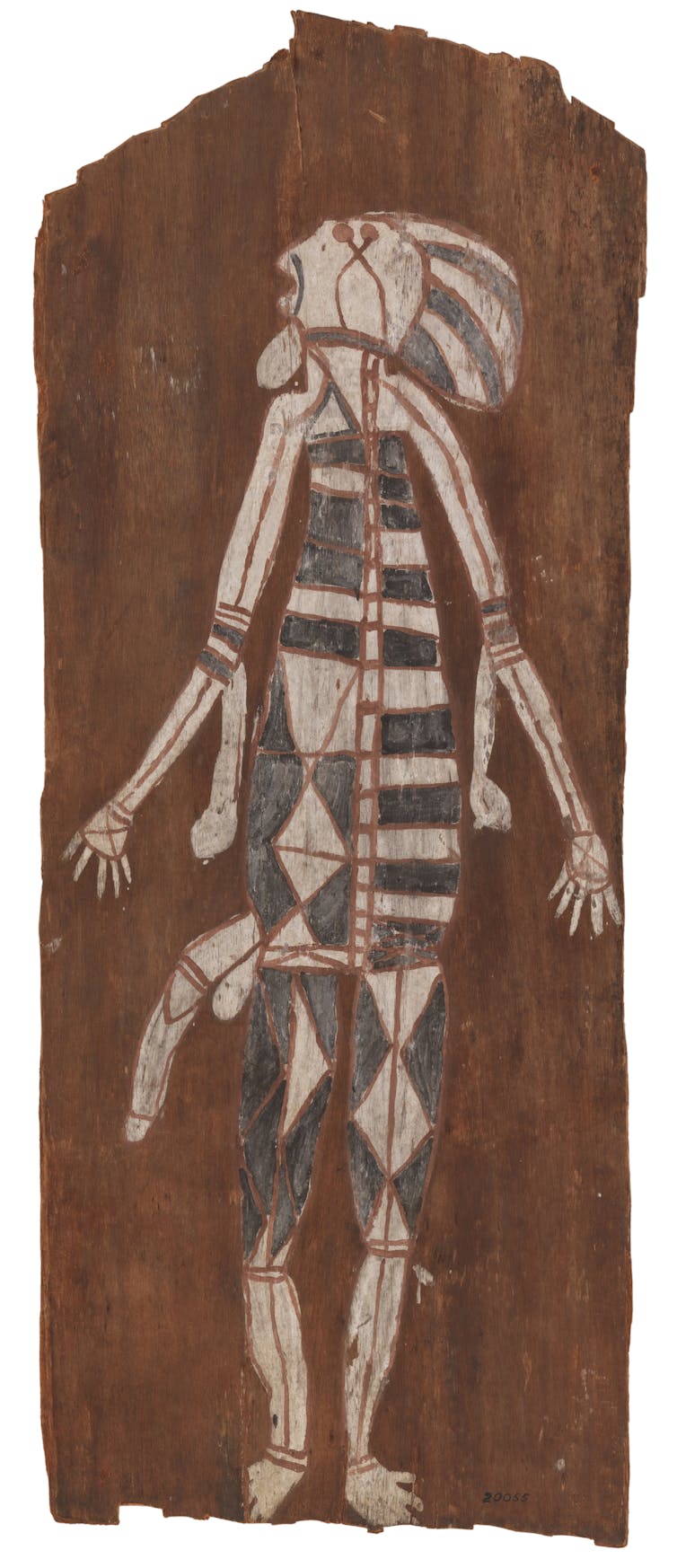 With Aboriginal research partners, including two of Majumbu’s great grandchildren, we reviewed the paintings held in the Melbourne Museum and identified some of Majumbu’s known rock paintings to confirm him as the artist behind six of the works in Melbourne Museum’s collection of barks, and a seventh in the Museé du Quai Branly – Jacques Chirac, in Paris.