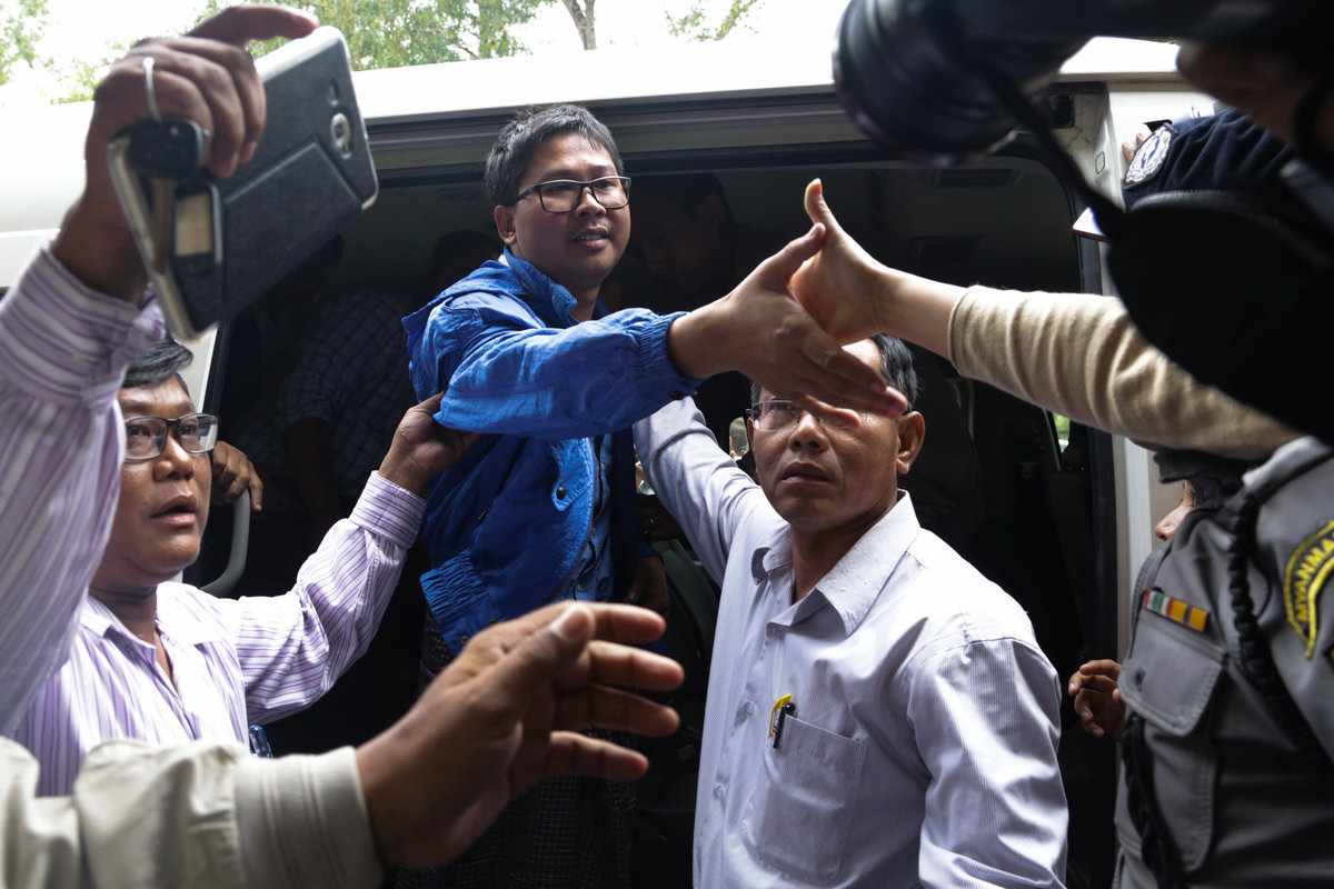 Dozens of reporters and cameramen were outside the courthouse in a northern district of Yangon for the appearance of the two journalists. They were brought in a white van, rather than a police truck, dressed in casual clothes and were not handcuffed.