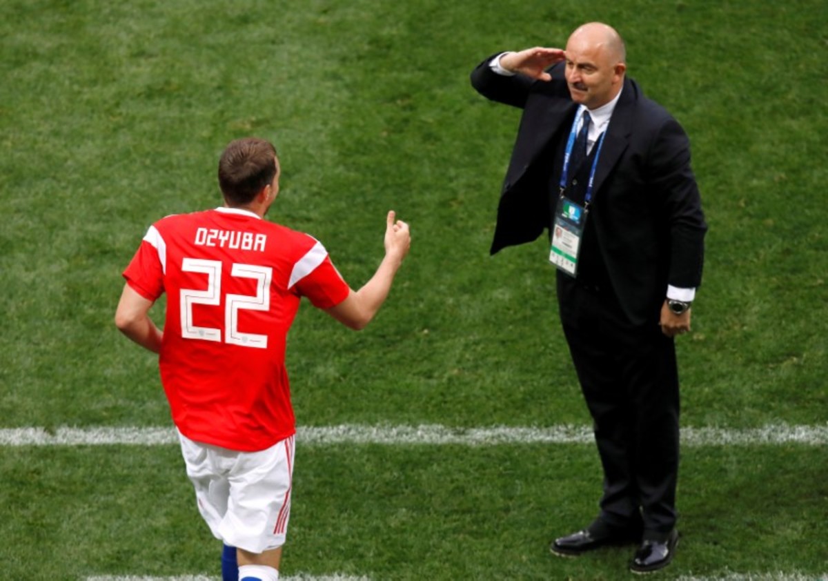 Maxim Shemetov: "In this picture Russian coach Stanislav Cherchesov salutes his player Artyom Dzyuba just after he scored in Russia's opening match against Saudi Arabia at Moscow's Luzhniki stadium. What is great about this moment is that before the start of the World Cup, Russia's national team had not won a match for several months, and the whole country didn't believe they could get very far. Against Saudi Arabia, Dzyuba scored immediately after coming off the bench in the second half."