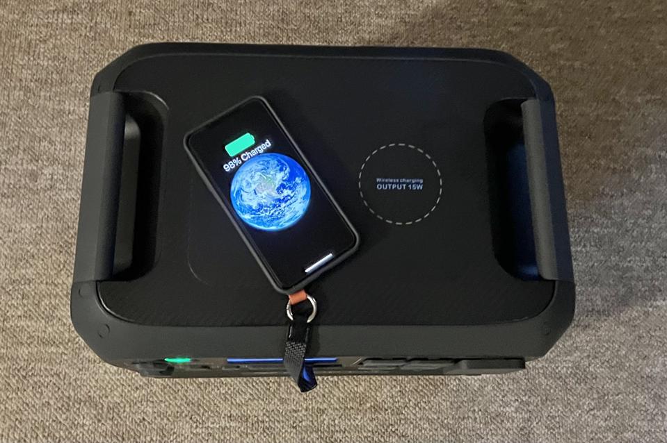 It doesn’t matter what you want to charge or power directly, the Bluetti AC200MAX has the port you need. Even a pair of Qi wireless charge ports on top of the unit. I’m not going to go through the full list (I’ve included it in the specs), but it includes four AC outlets. You can charge/run multiple devices simultaneously, up to a total combined continuous power output of 2200W.