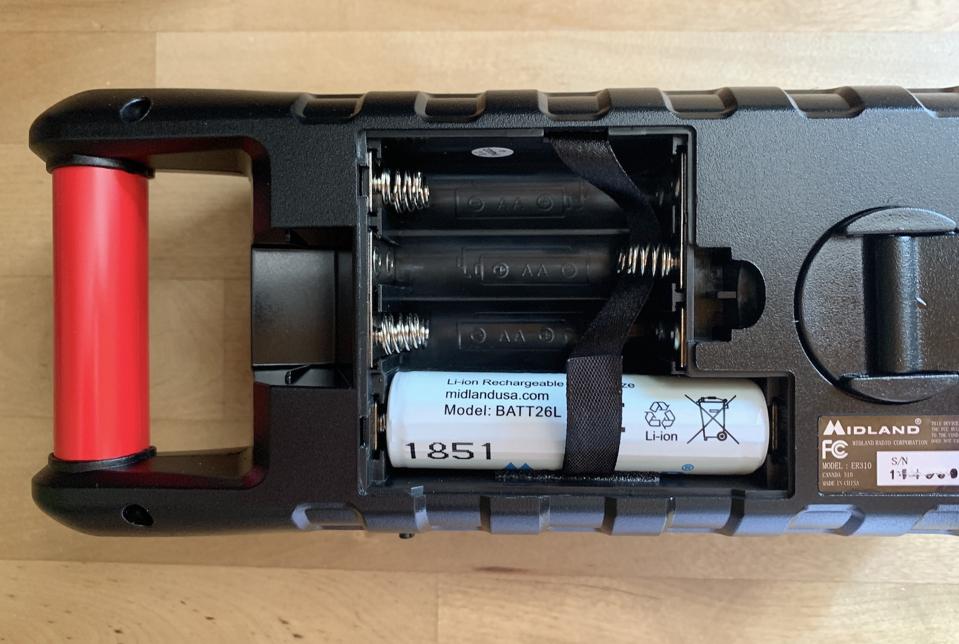 Crack open the back of the ER310 and you’ll discover it has dual battery sources. It comes equipped with a single, 2600 mAh lithium ion rechargeable battery which is rated for up to 32 hours of normal radio use. However, you can also install six AA batteries. If you are switching between power sources, you’ll need to flip the power source switch.