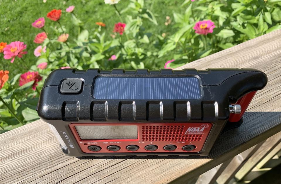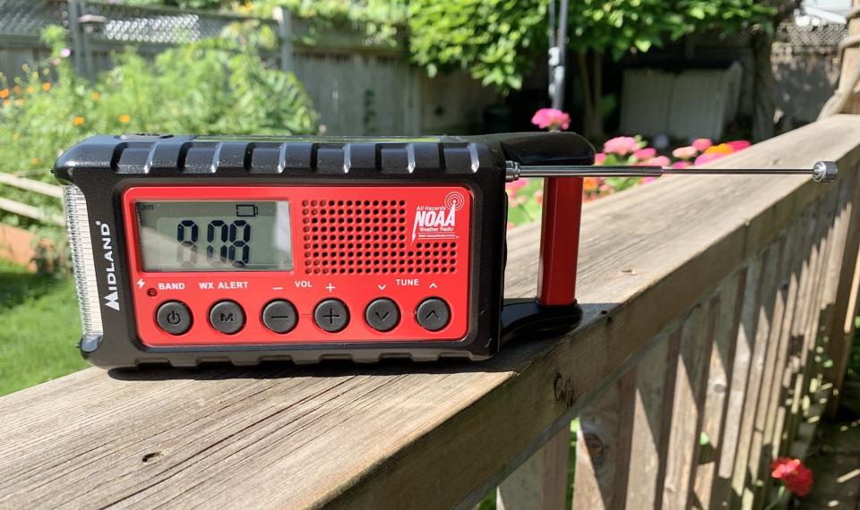 Severe weather can strike at any time, and it can have severe consequences — even a mild storm can result in power outages. The Midland ER310 is an emergency radio that helps in two ways. First, it has not just AM and FM radio, but it also picks up NOAA weather alerts from the National Weather Service. You have a warning if severe weather is threatening, giving you time to seek shelter. And if the power goes out, it provides radio, light, and the ability to charge your smartphone.