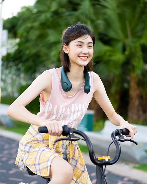 Wrap this personal fan around your neck for hands-free cooling. Because you don't have to hold it, it's great for bike-riding and yardwork. Three speed settings let you customize your comfort, and it's quiet, too, so you can focus on conversations, music, or the sounds of nature.
