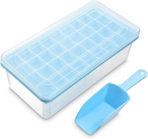 Prep the rocks for your next party with this ice cube tray and bin. Silicone construction releases cubes easily, and the included lid keeps out freezer odors for perfect refreshment-ready ice. The tray makes up to 32 cubes at a time, and the ample bin holds up to 96.