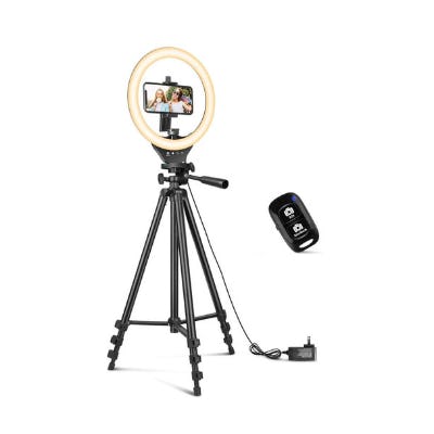 Whether you vlog for a living or participate in Zoom meetings, this LED ring light and stand lets you put your best face forward. It's universally compatible with most smart phones and adjusts up to 50 inches — perfect for sitting or standing. A pocket-sized remote means you can snap the shutter from up to 30 feet away. Imagine the well-lit selfies.
