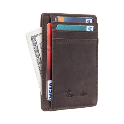 Travel in confidence with this small 4.7-star rated RFID-blocking wallet that keeps your cards protected against would-be skimmers. It's compact to keep in your front pocket — a traveling tip for security — with ample space for your ID, credit cards, and cash. Leather construction offers a high-end finish.