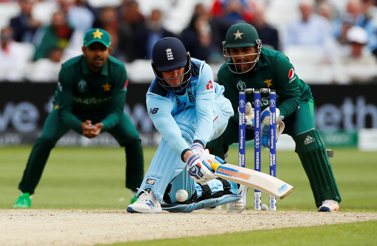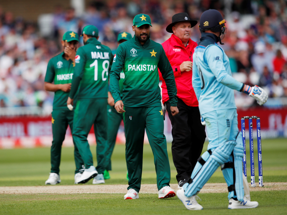 Cricket - ICC Cricket World Cup - England v Pakistan - Trent Bridge, Nottingham, Britain - June 3, 2019 Pakistan's Shadab Khan celebrates the wicket of England's Jason Roy Action Images via Reuters/Andrew BoyersCricket - ICC Cricket World Cup - England v Pakistan - Trent Bridge, Nottingham, Britain - June 3, 2019 England's Jason Roy in action before he is given out for LBW after a DRS review Action Images via Reuters/Jason CairnduffCricket - ICC Cricket World Cup - England v Pakistan - Trent Bridge, Nottingham, Britain - June 3, 2019 England's Jason Roy speaks with Pakistan's Mohammad Amir after losing his wicket Action Images via Reuters/Andrew BoyersCricket - ICC Cricket World Cup - England v Pakistan - Trent Bridge, Nottingham, Britain - June 3, 2019 England's Joe Root, Adil Rashid, Jofra Archer and Moeen Ali Action Images via Reuters/Andrew BoyersCricket - ICC Cricket World Cup - England v Pakistan - Trent Bridge, Nottingham, Britain - June 3, 2019 Pakistan's Shadab Khan celebrates with Mohammad Amir and team mates after taking the wicket of England's Jason Roy Action Images via Reuters/Andrew BoyersCricket - ICC Cricket World Cup - England v Pakistan - Trent Bridge, Nottingham, Britain - June 3, 2019 England's Chris Woakes and Eoin Morgan celebrate the wicket of Pakistan's Shoaib Malik Action Images via Reuters/Andrew BoyersCricket - ICC Cricket World Cup - England v Pakistan - Trent Bridge, Nottingham, Britain - June 3, 2019 England's Jofra Archer in action Action Images via Reuters/Andrew BoyersCricket - ICC Cricket World Cup - England v Pakistan - Trent Bridge, Nottingham, Britain - June 3, 2019 England's Chris Woakes celebrates with Joe Root after taking the wicket of Pakistan's Sarfaraz Ahmed Action Images via Reuters/Andrew BoyersCricket - ICC Cricket World Cup - England v Pakistan - Trent Bridge, Nottingham, Britain - June 3, 2019 England's Chris Woakes celebrates catching out Pakistan's Sarfaraz Ahmed Action Images via Reuters/Jason CairnduffCricket - ICC Cricket World Cup - England v Pakistan - Trent Bridge, Nottingham, Britain - June 3, 2019 England's Chris Woakes celebrates catching out Pakistan's Sarfaraz Ahmed Action Images via Reuters/Jason CairnduffCricket - ICC Cricket World Cup - England v Pakistan - Trent Bridge, Nottingham, Britain - June 3, 2019 England's Chris Woakes catches out Pakistan's Sarfaraz Ahmed Action Images via Reuters/Jason CairnduffCricket - ICC Cricket World Cup - England v Pakistan - Trent Bridge, Nottingham, Britain - June 3, 2019 England's Joe Root reacts during the match Action Images via Reuters/Andrew Boyers