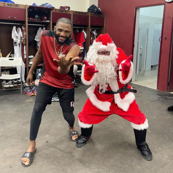 The photograph spurs contemplation on the dynamic diversity of individuals involved in the realm of professional sports, reminding us that athletes too partake in holiday festivities and joyous celebrations.