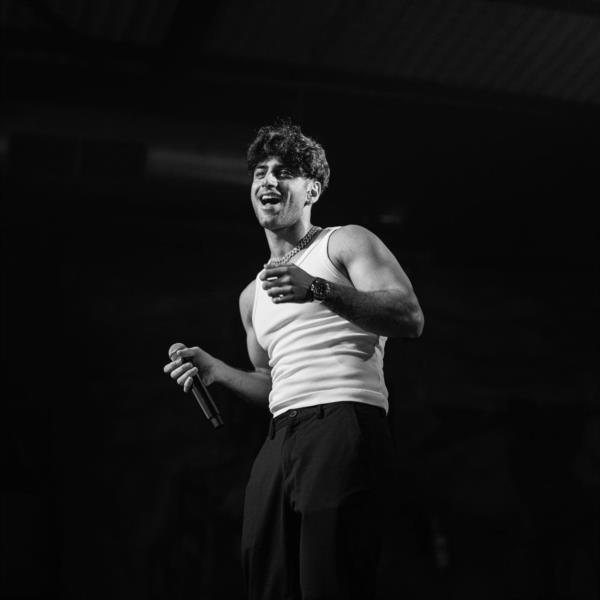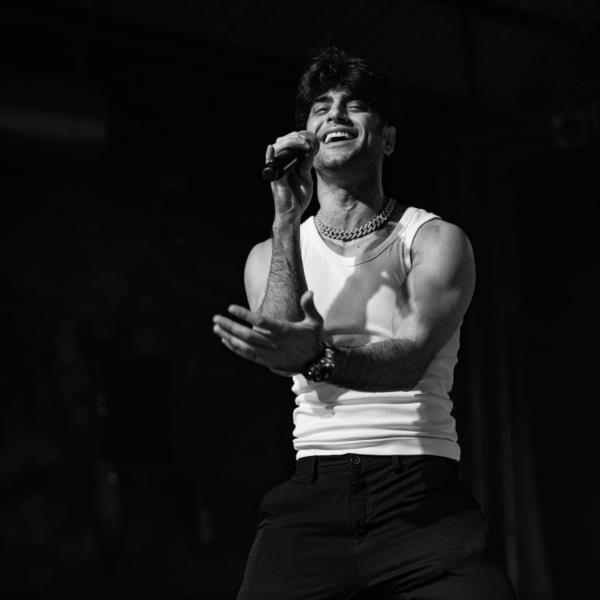 The black and white photograph perfectly captured the essence of the moment, highlighting Reynmen's infectious energy and pure joy. His radiant smile seemed to light up the stage, drawing the audience into his world of music and entertainment.