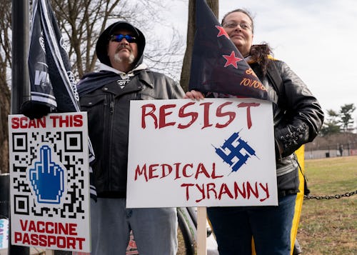 This, in a microcosm, is what Sunday’s rally was all about: an ahistorical, panic-inducing, conspiracy-mongering hootenanny where the proudly unvaxxed could mass in close proximity to one another and feel good about themselves and their choices.