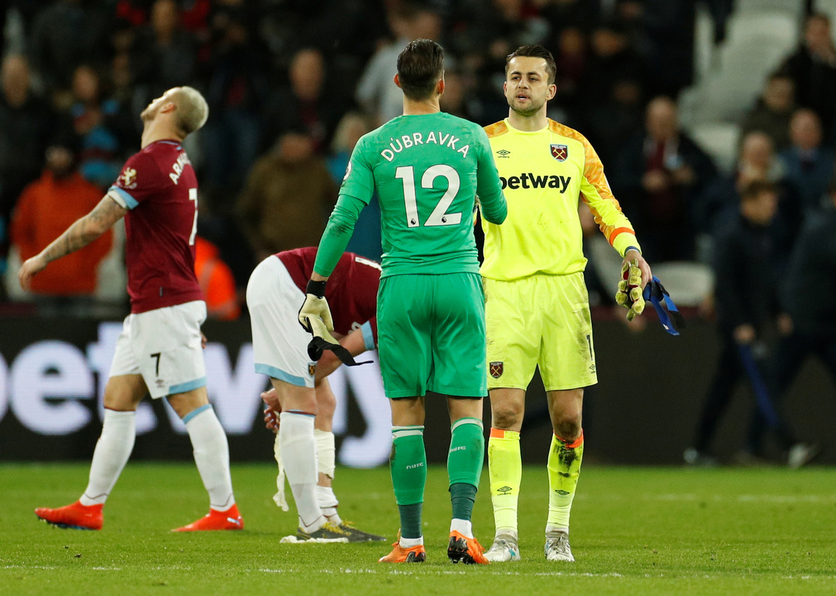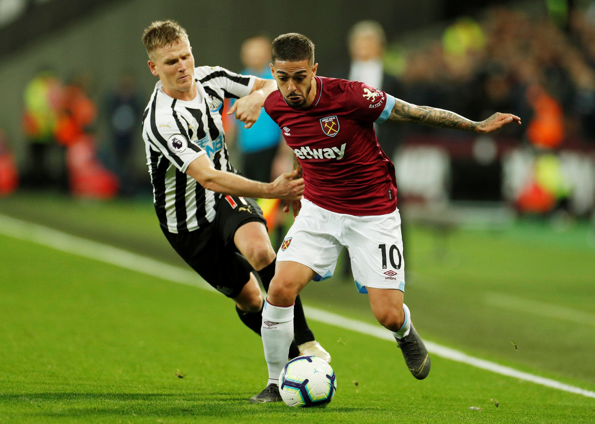 Soccer Football - Premier League - West Ham United v Newcastle United - London Stadium, London, Britain - March 2, 2019 West Ham's Lukasz Fabianski shakes hands with Newcastle United's Martin Dubravka at the end of the match Action Images via Reuters/John SibleySoccer Football - Premier League - West Ham United v Newcastle United - London Stadium, London, Britain - March 2, 2019 West Ham's Manuel Lanzini in action with Newcastle United's Matt Ritchie Action Images via Reuters/John Sibley