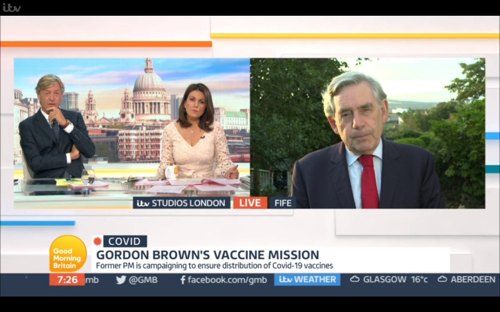The 65-year-old presenter had been speaking with former prime minister Gordon Brown about the possibility of redistributing surplus vaccines before they expire.