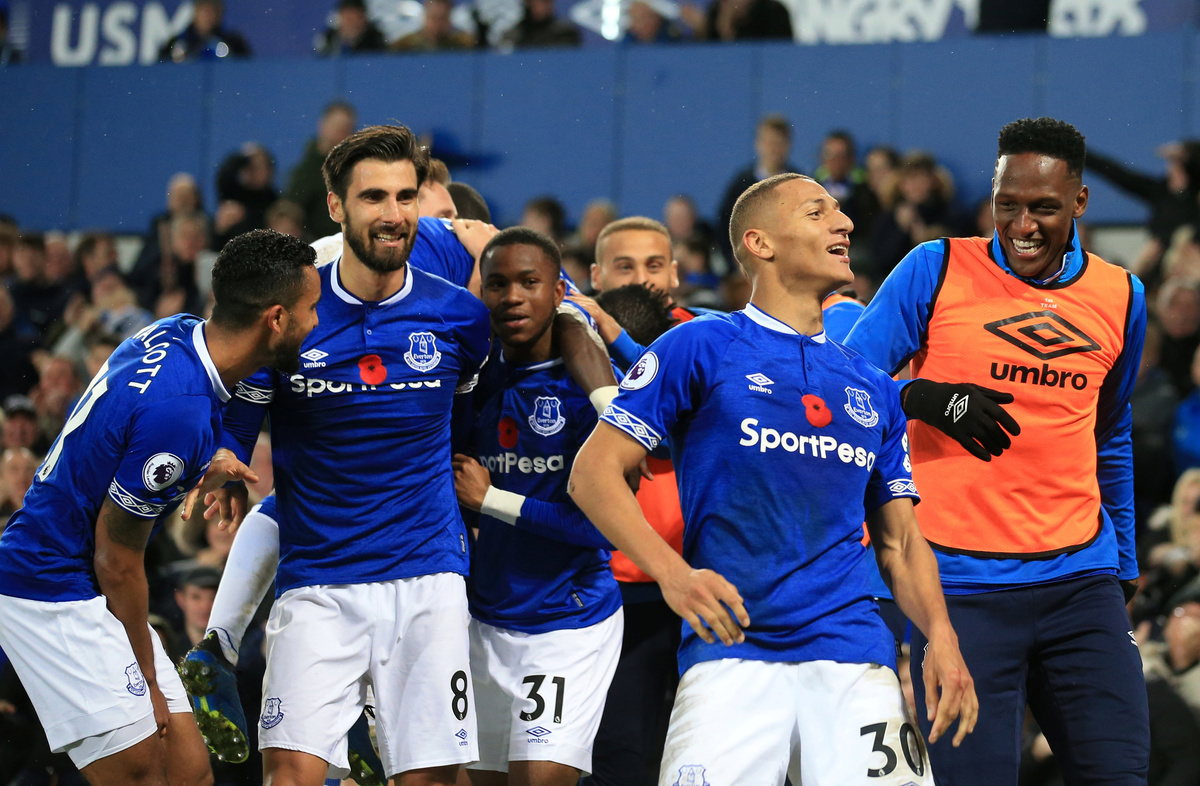 The home side dominated possession and after 25 minutes were in front when Gylfi Sigurdsson surged forward and exchanged passes with Bernard before laying the ball off for Richarlison who scored with an angled finish.