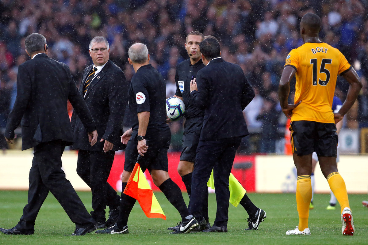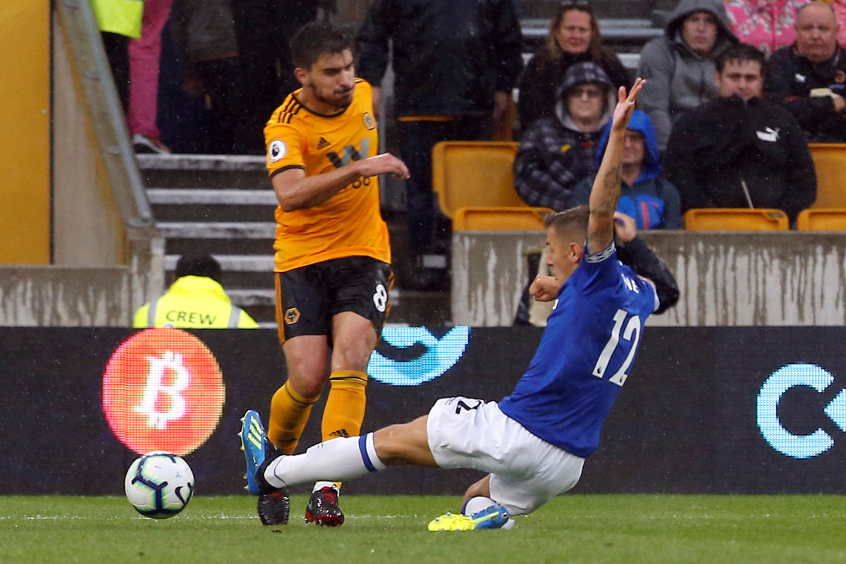 Soccer Football - Premier League - Wolverhampton Wanderers v Everton - Molineux Stadium, Wolverhampton, Britain - August 11, 2018 Everton's Lucas Digne in action with Wolverhampton Wanderers' Ruben Neves Action Images via Reuters/Craig Brough Soccer Football - Premier League - Wolverhampton Wanderers v Everton - Molineux Stadium, Wolverhampton, Britain - August 11, 2018 Wolverhampton Wanderers' Raul Jimenez celebrates scoring their second goal Action Images via Reuters/Craig Brough Soccer Football - Premier League - Wolverhampton Wanderers v Everton - Molineux Stadium, Wolverhampton, Britain - August 11, 2018 Everton manager Marco Silva talks to referee Craig Pawson after the match Action Images via Reuters/Craig Brough