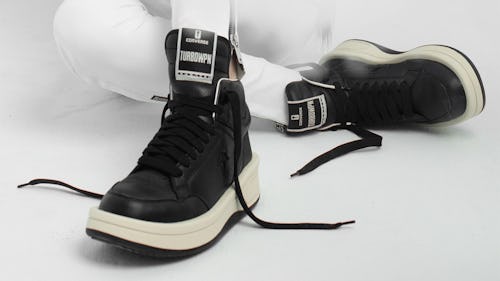 Right away, Owens’ Weapon looks more easily wearable than his Chucks. The latter sneaker has proven more comfortable than appearances suggest, but the square lines are likely to turn off those not utterly devoted to all things Rick. His Weapon, though, is a more straightforward bid for a fashionable update with only slightly offbeat detailing.