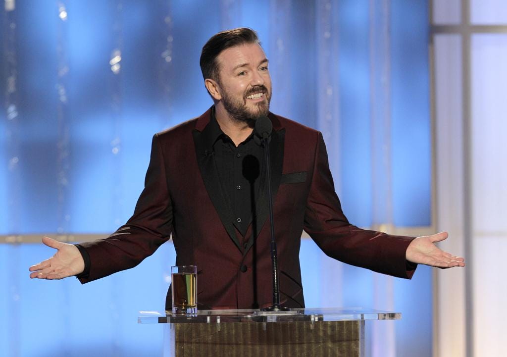 When Ricky Gervais hosted the Golden Globe awards in 2010 he said "It's OK folks, I won't be doing this again" on more than one occasion. His acerbic remarks stunned Hollywood stars more accustomed to flattery and pandering from awards hosts.