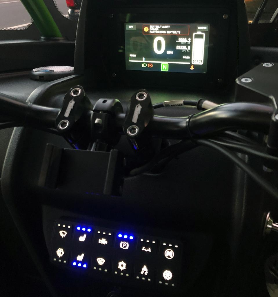 Saddling up the FUV, the first thing you have to do is strap in. Both rider and passenger use double sets of seatbelts, one on each side that criss-cross your body. Simple enough. Next is a sort of multi-step startup procedure designed to make sure you don’t inadvertently goose the FUV forwards or backwards when you power it up, and once you do it a couple of times, it becomes muscle memory. The first day I had the FUV I rode it solo, and initially in a large empty parking lot near my home, just to get a feel for it. I’m a life-long motorcycle rider and a fan of three-wheelers because they are an interesting mashup of car and motorcycle, and there is a lot of innovation in the space right now, but new FUV riders should approach with caution and learn the dynamics of their vehicle, no matter what it is.