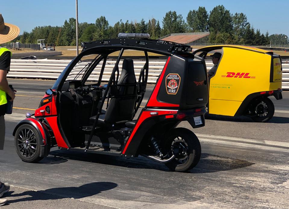 As expected, it was fun. The name stuck. But Frohnmayer’s vision for the FUV goes far beyond it just being a fun, unusual toy, and when I see vehicles like the FUV or the ElectraMechannica SOLO, what I really wanted to know is: Once in final form, how do they work as real-world vehicles, in traffic, running errands, in the rain, and of course, having fun. The U in FUV is for Utility, after all, and Arcimoto does produce a single-seat delivery version of the FUV, as well as specialized versions for first responders. There is also now a sporty Roadster version without the roll cage, and perhaps a leaning version at some point in the future after a recent acquisition.