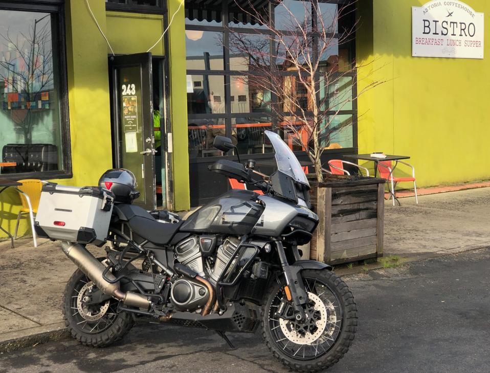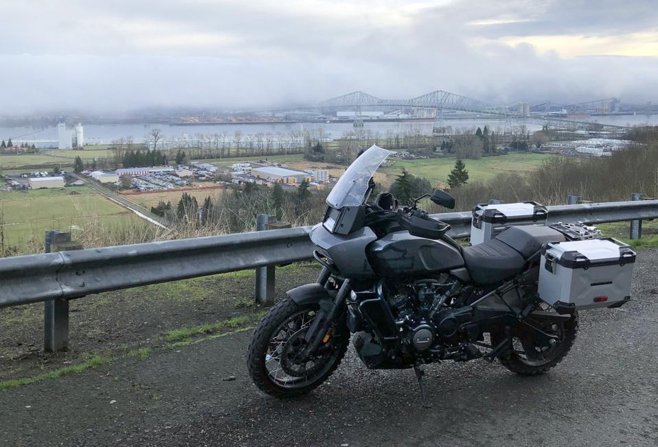 Like most adventure bikes, the Pan America’s capabilities and design strongly encourages riders to get way outta town for long stretches. Seeing how it was the dead of a Pacific Northwest winter while I had the PA in for review, I had to pick my riding windows carefully since road conditions can change dramatically as you leave the Portland area. The towering volcanic Cascade Range lay to the east and if it’s 42 degrees in town, it can be 30 and frozen 20 minutes out of town as the roads quickly climb into the mountains. Going west, the rugged Oregon Coast is separated from Portland by the lesser Coast Range, where passes peak at 1,500 feet in altitude and temperatures are more mild due to the ocean’s influence. After Harley-Davidson kindly extended my review period due to weather (it snowed for a while), some clear and not-too-cold days appeared in the forecast and I pointed the Pan America towards Astoria, one of the West Coast’s oldest cities, located at the topmost tip of Oregon where the mighty Columbia River finally meets the Pacific Ocean.