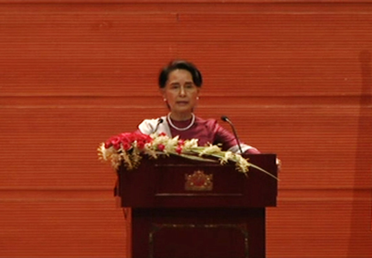 Suu Kyi is due to speak to the nation on Tuesday about a crisis the United States has called a "defining moment" for her country.