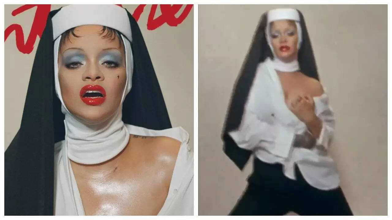 Rihanna has ignited controversy once again, this time with a photoshoot that features her dressed as a nun. While it was not so much of the nun's habit that sparked the outrage, but rather the singer's 'seductive' poses that see her pulling off her button-down shirt to reveal her chest tattoo. a