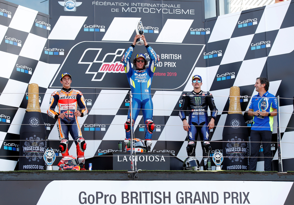 (Reuters) - Suzuki's Alex Rins passed MotoGP world champion Marc Marquez at the final corner to win a thrilling British Grand Prix on Sunday.